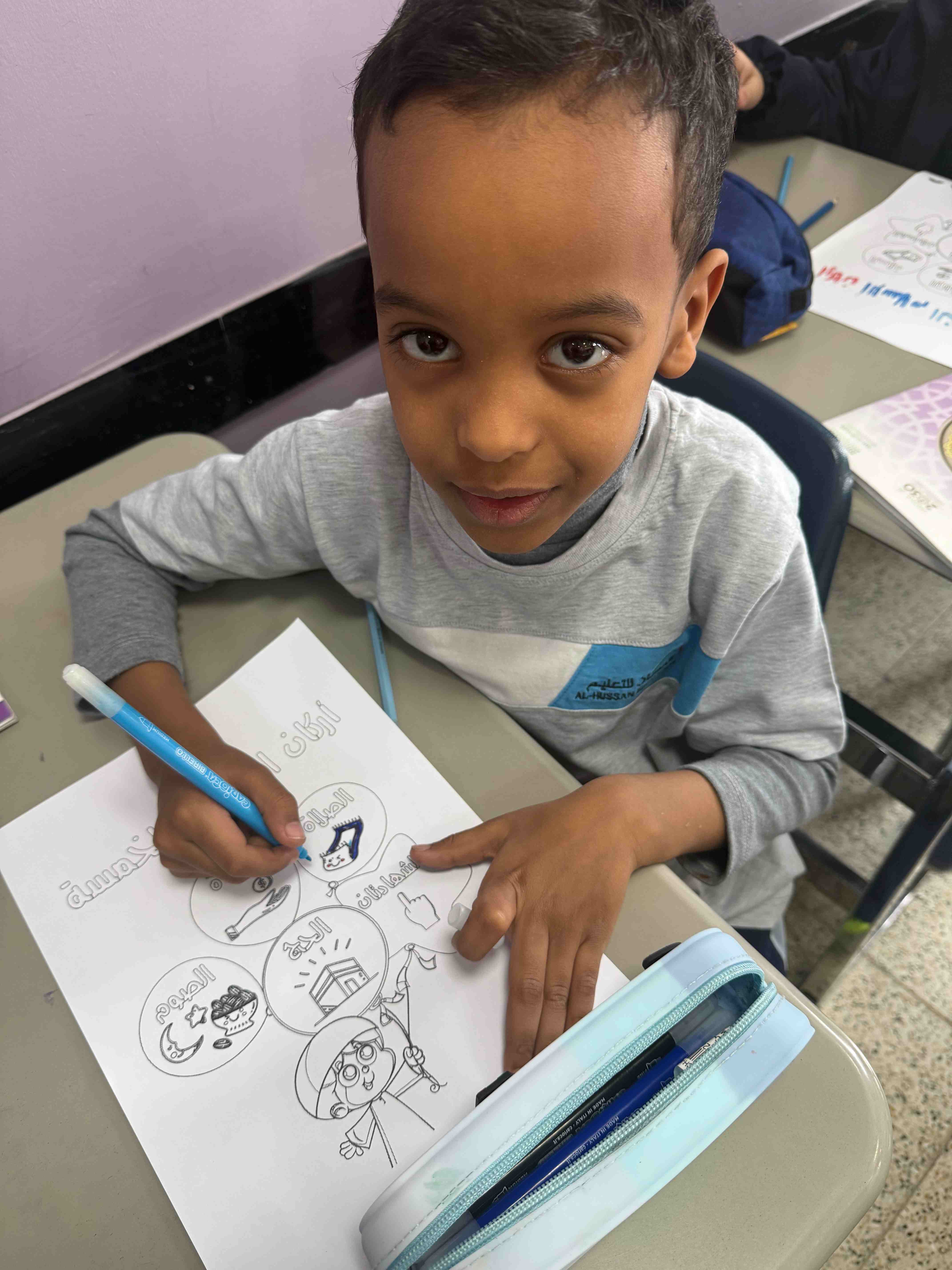 ولتعزيز فهمهم، شاركوا في نشاط تلوين مميز لأركان الإسلام، عبّروا من خلاله عن استيعابهم للمفاهيم بطريقة إبداعية وجميلة.