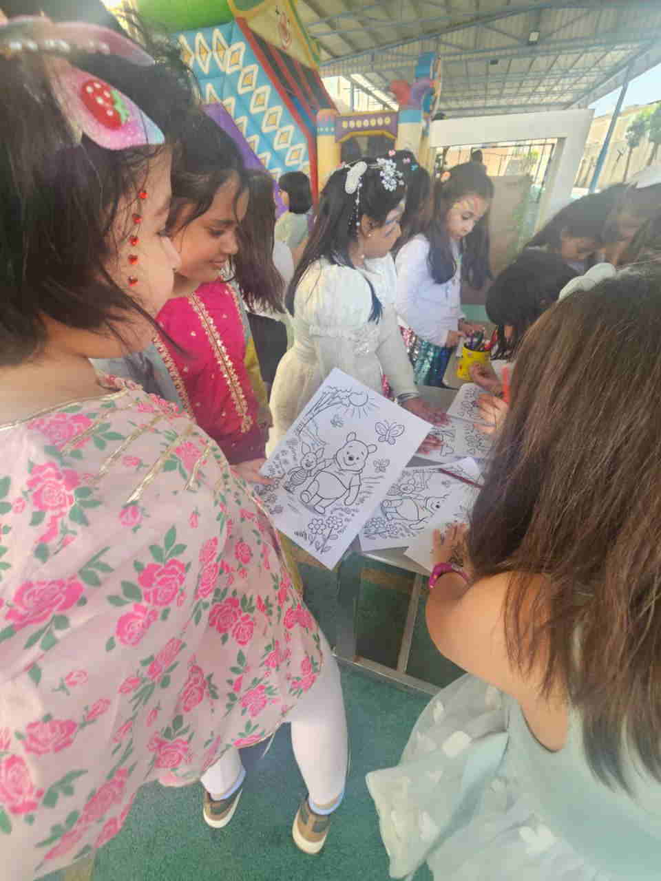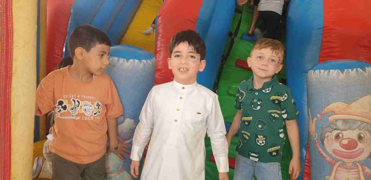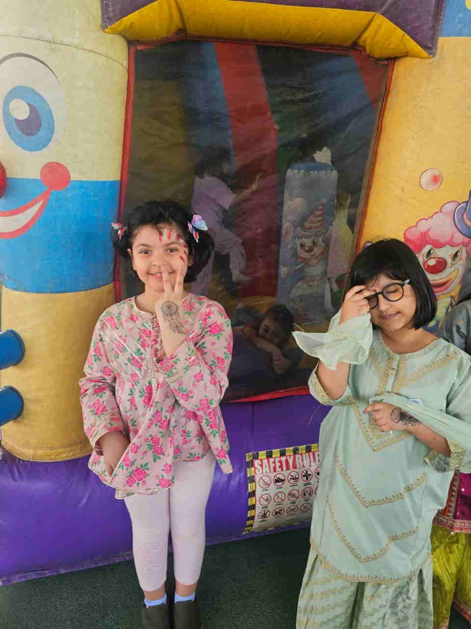 Our students looked wonderful in their beautiful Eid outfits, adding a special festive touch to the day. They enjoyed a variety of fun activities, including face painting, exciting games, and a jumping castle that brought endless smiles. The atmosphere came alive with cheerful Eid songs, creating a vibrant and joyful spirit throughout the celebration.
