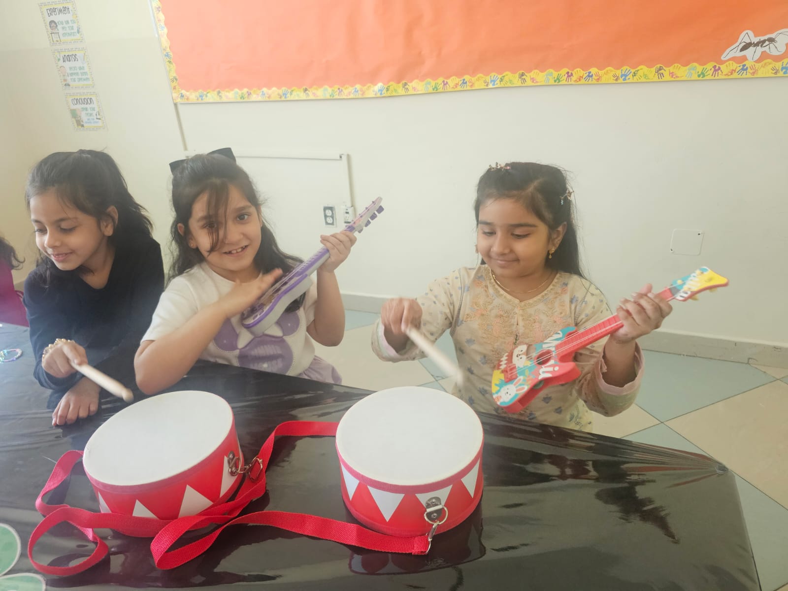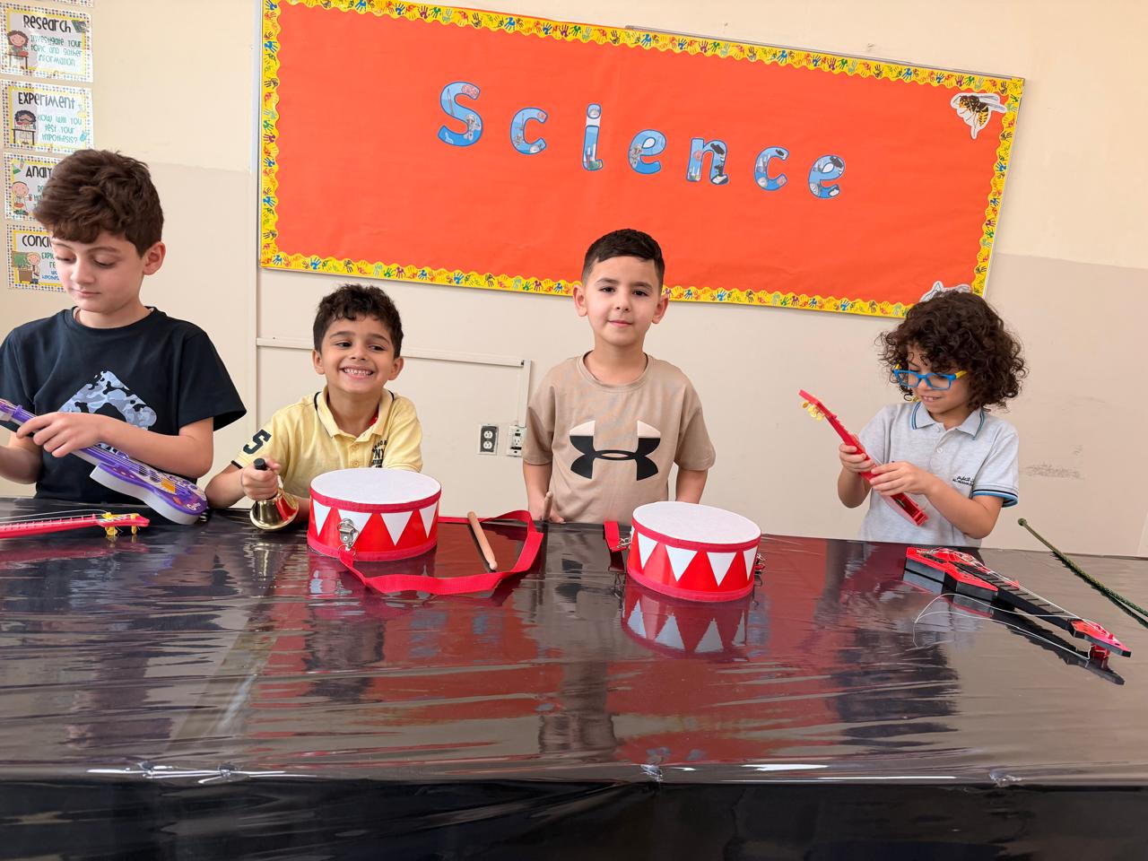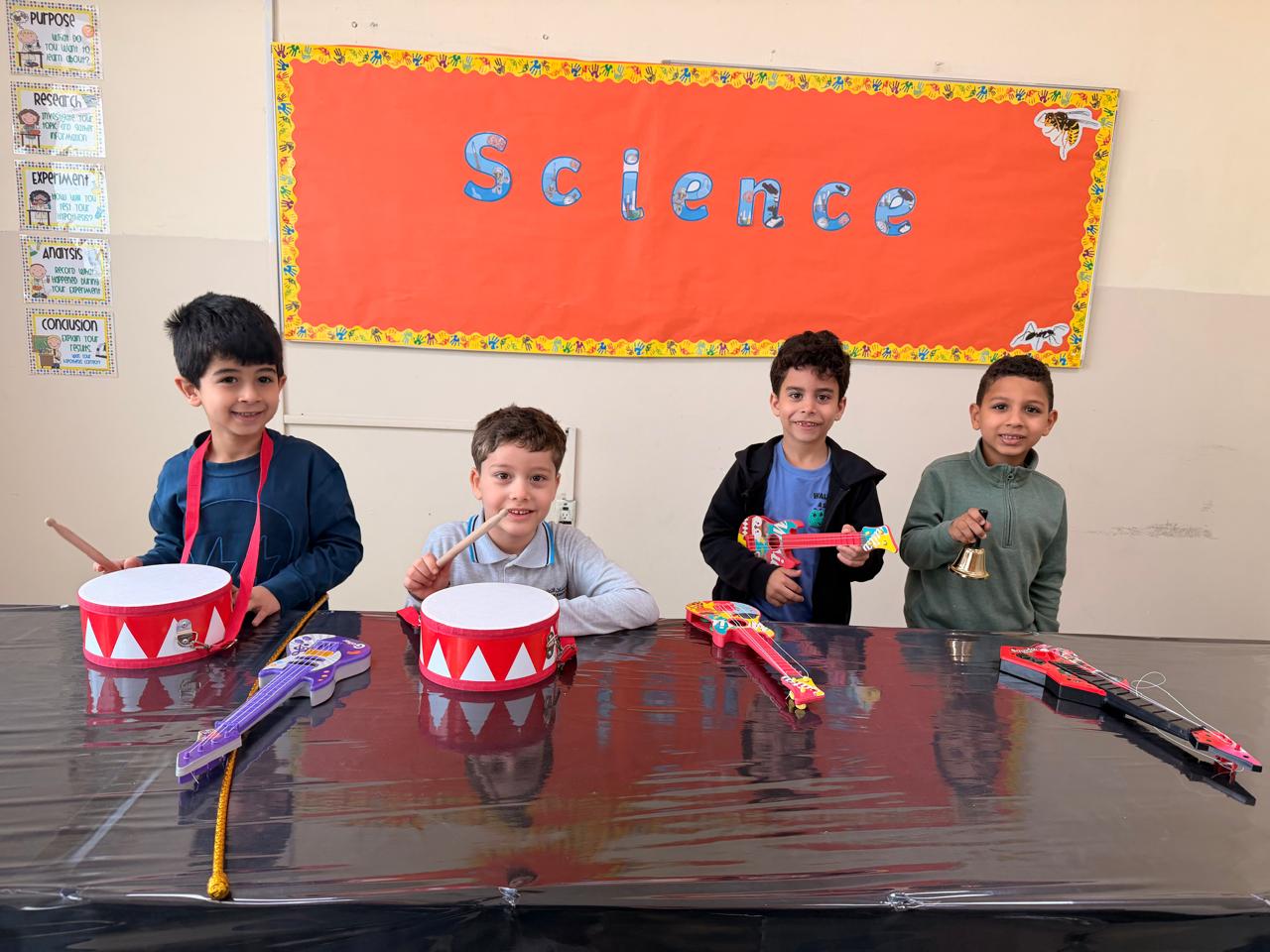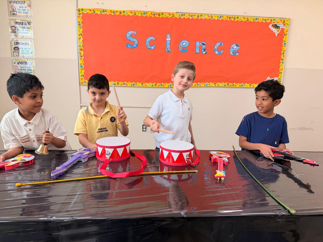 Orbit International School Grade 1 students play with musical instruments to discover different types of sounds