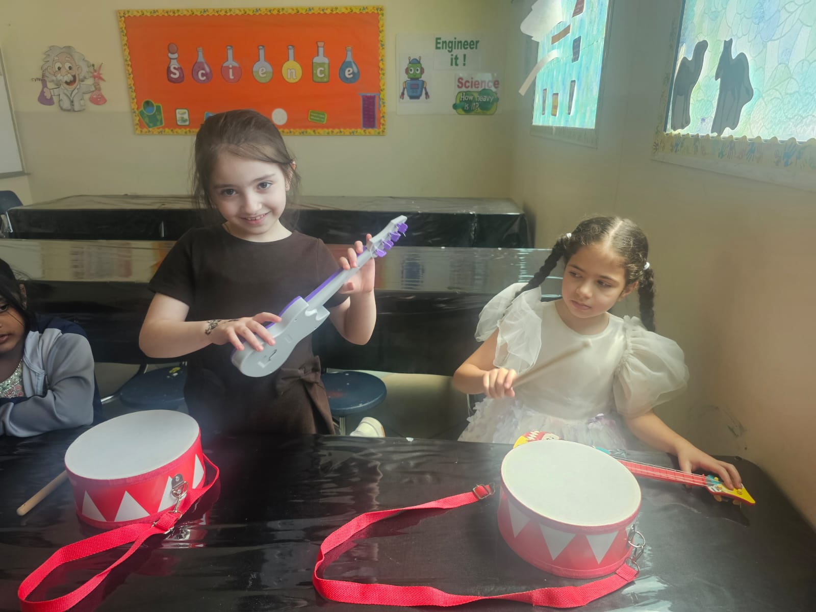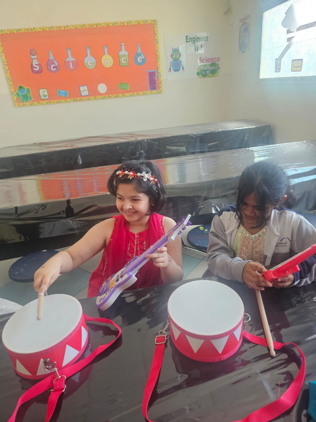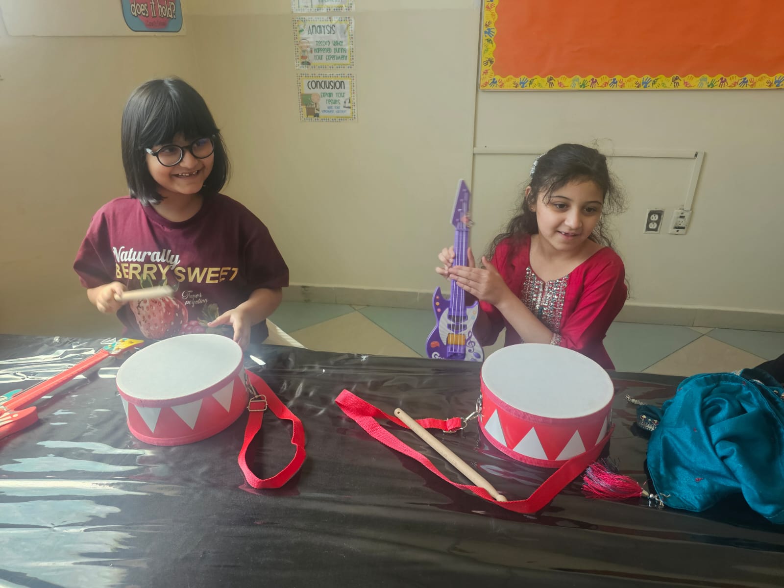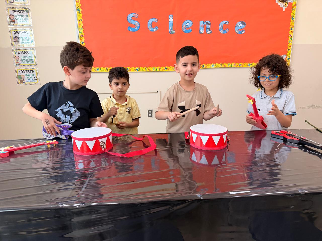 Orbit International School Grade 1 students play with musical instruments to discover different types of sounds