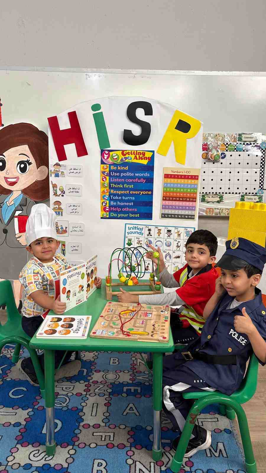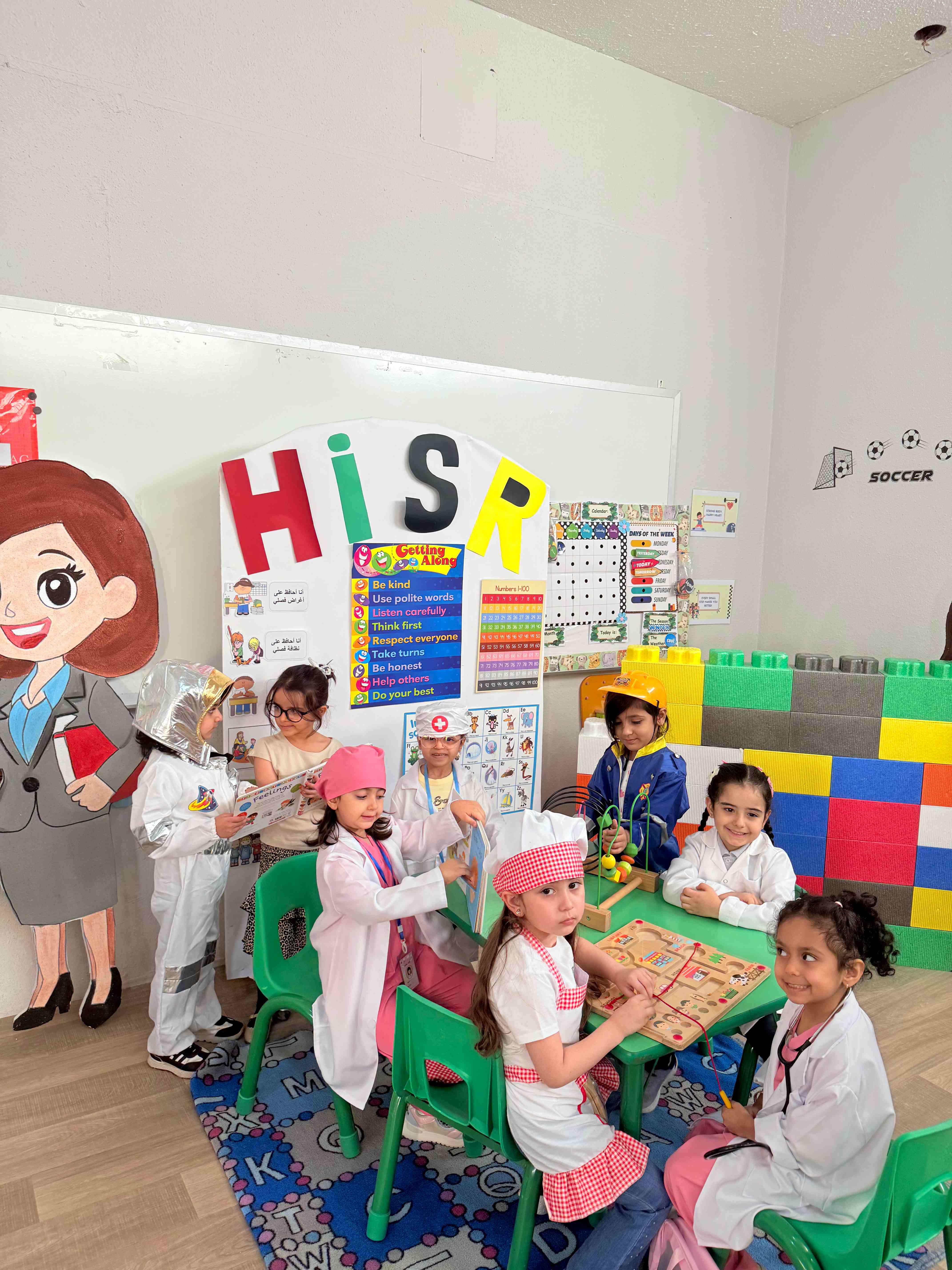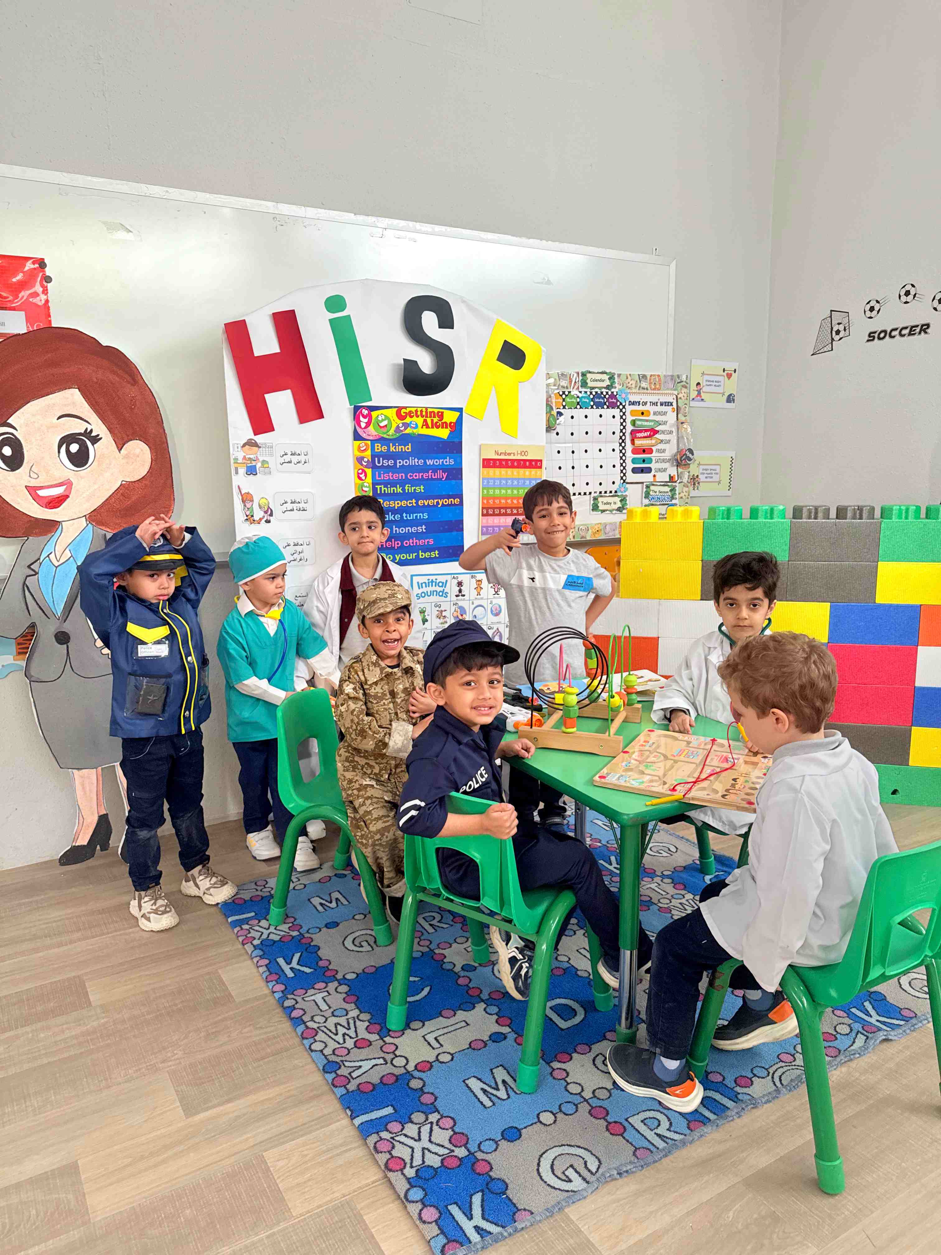 At AL Hussan International School – Riyadh, this activity introduces children to community helpers and their important roles in everyday life. Students explore jobs such as chefs, teachers, firefighters, police officers, pilots, and farmers. Through engaging tasks like matching helpers with their tools, role-playing, and group discussions, they develop their speaking and listening skills while learning to appreciate how these helpers keep the community safe, healthy, and happy.
