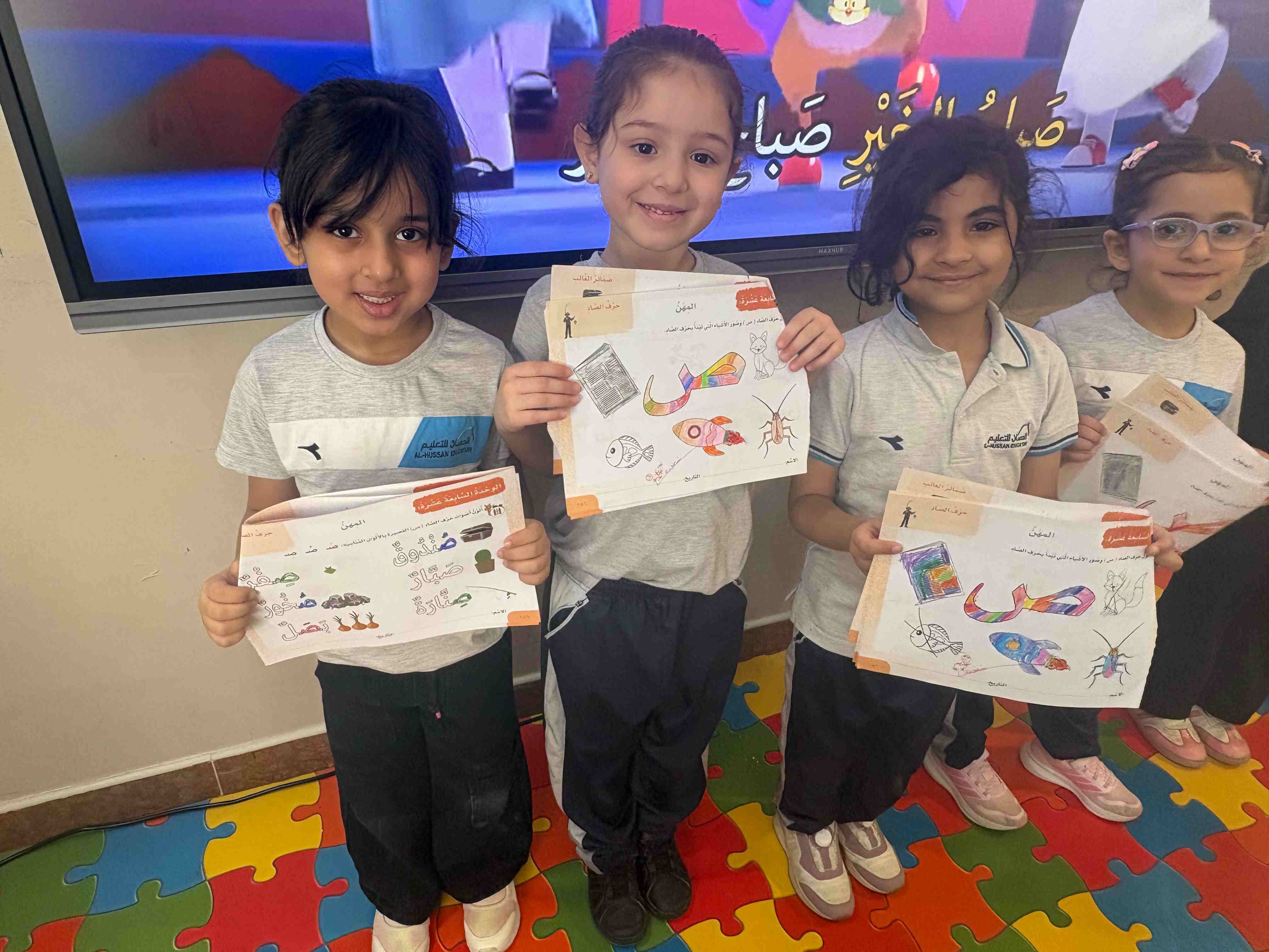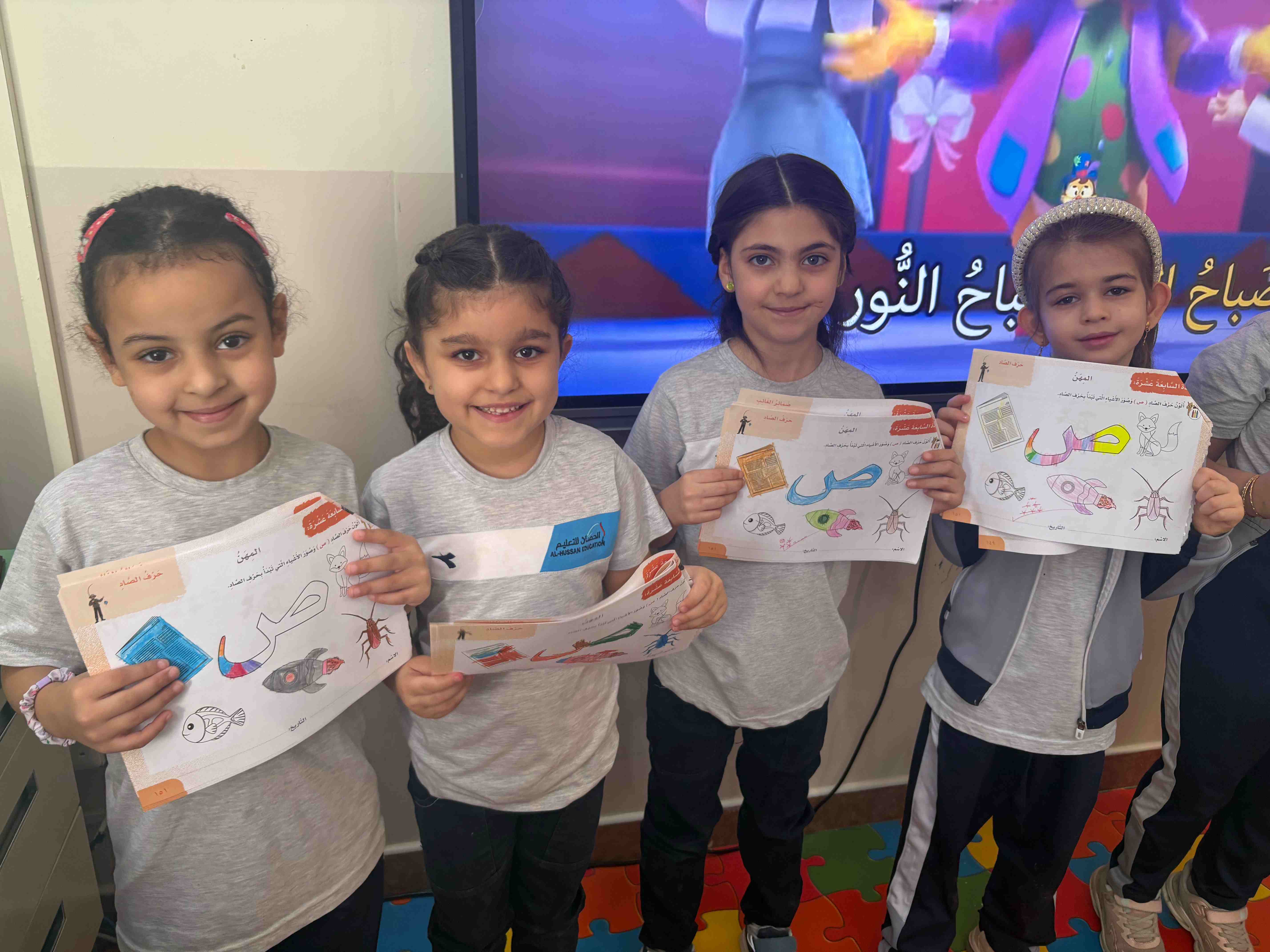 بعد ذلك، انتقل الطلاب إلى مرحلة التلوين باستخدام أدوات متنوعة وآمنة تناسب مرحلتهم العمرية، في أجواء تعليمية ممتعة عززت من فهمهم للحرف وتنمية مهاراتهم الحركية الدقيقة.